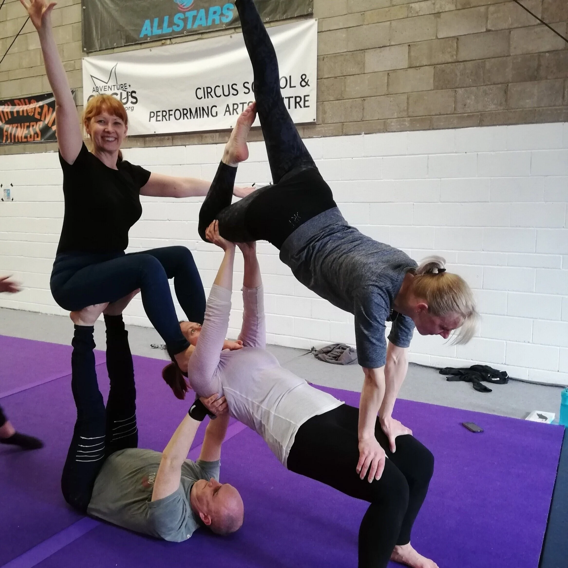 In acrobalance we explore movement, partner lifting and catching, handstanding, and positioning for basing another person or people. We explore a combination of standing and lying moves.
